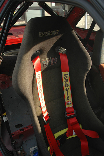 Nardi Steering Wheel, 5ZIGEN N1R Fixed Back Bucket seat, Cusco Handbrake Button, Greddy Water Temp Gauge. Cusco 5 Point Bolt In Half Cage