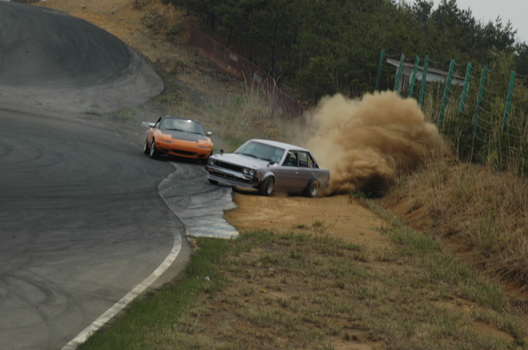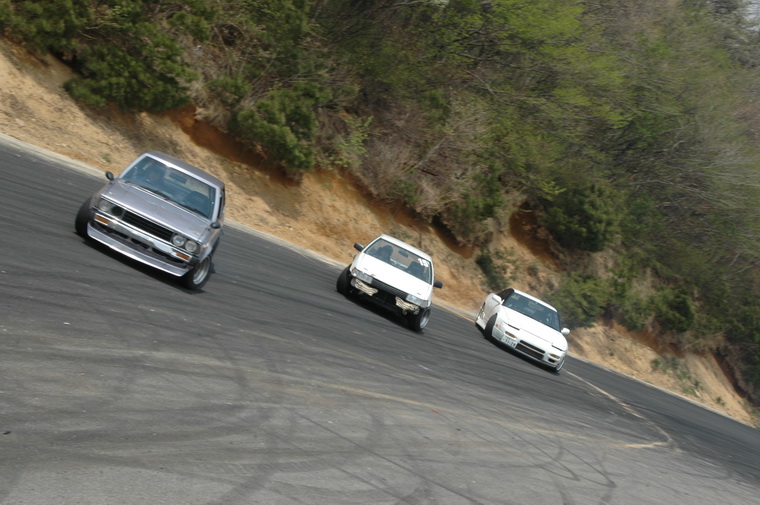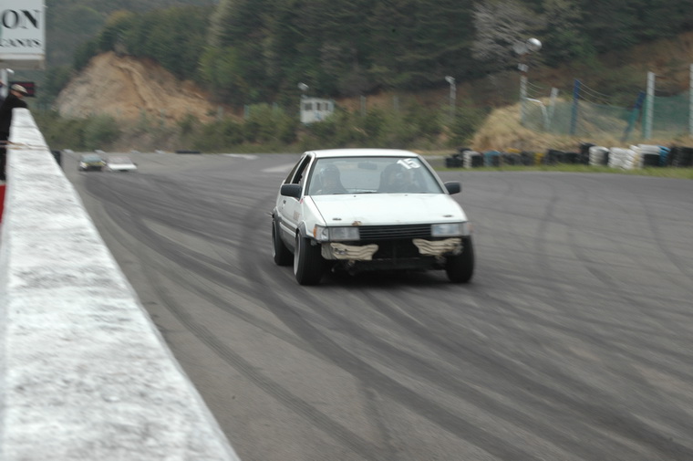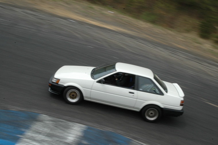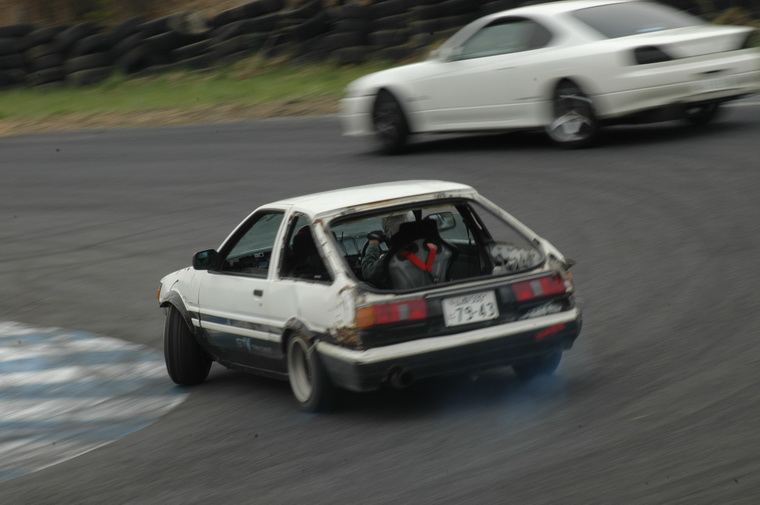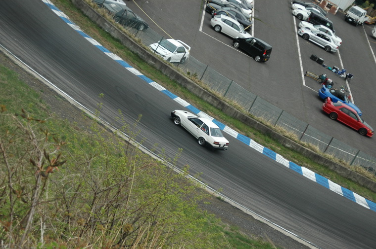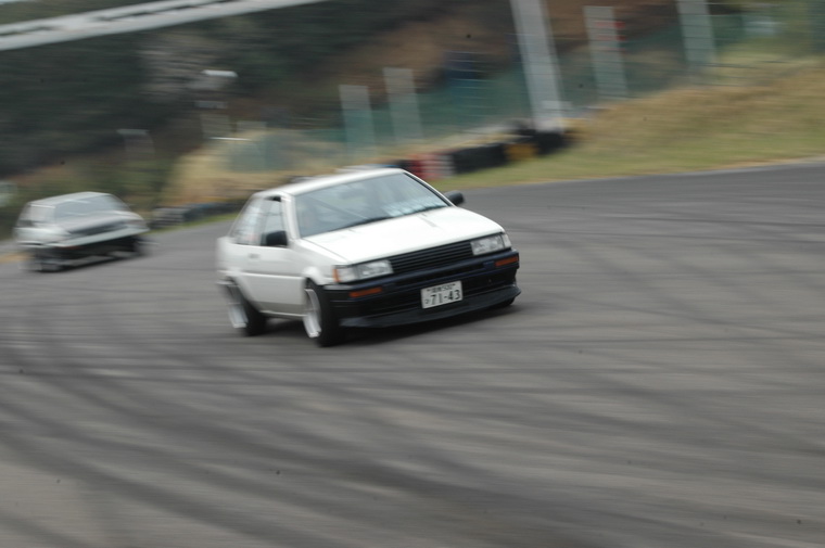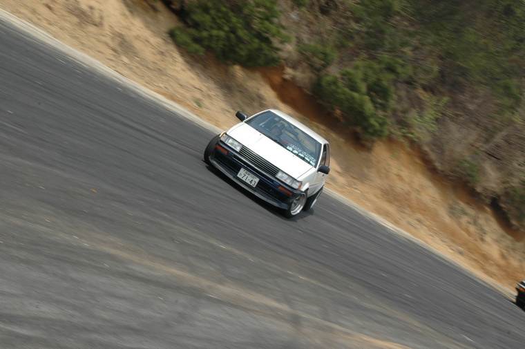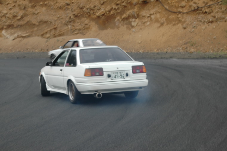 Went to nishi course and saw the motorfix crew going good, then headed to Kita course as Luke had said the 86 Crew were heading up there… Waited around for a couple of hours then the motorfix crew came up and so did the Peak Privateers group. I was quite excited to see them Manji`ing the straight and doing a few team runs. Then I met up with Luke and Peter and they were filming the Peak crew, so decided to tag along and see who was driving. Funnily enough I saw a fimiliar face, Masao Suenaga from Team Orange was there in his street 180sx, along with the beaten up old AE86 with no hatch, Clean Levin Notch, Tough E70 and a cool little AE70 Sprinter. Luke was filiming from the beaten up old 86 and was riding passenger in that car, Peter was riding with Suenaga-san so I decided to ask the driver of the levin notch (seeing as I have one myself) if I could ride with him, and the answer was Yes. I grabbed my helmet and we headed off onto the track…. Ill let the pictures and Lukes Video when he puts it up tell the rest!