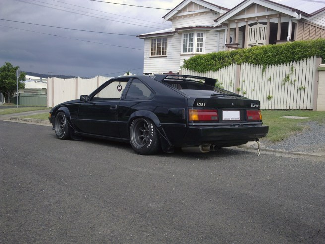RA65 struts (gives -2 camber), cut 60mm, coilover converted (8kgmm),SW20 rear shocks, 40mm AJPS RCA’s.