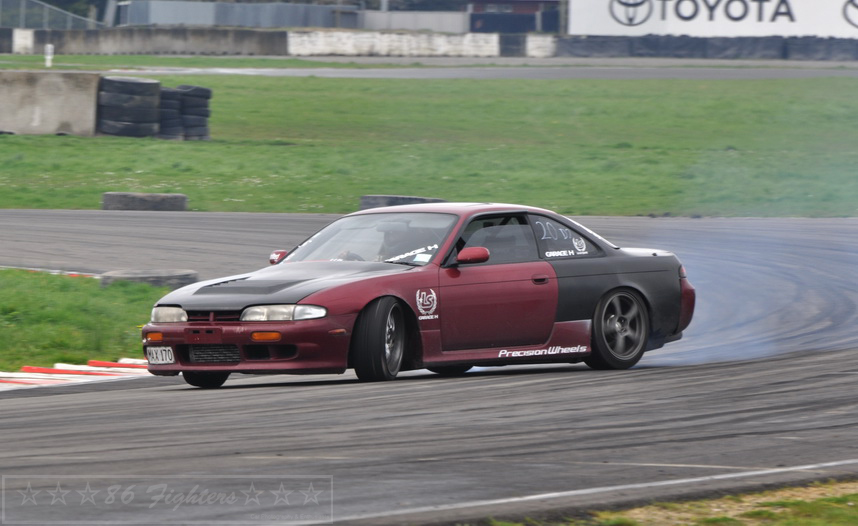 Craig Brant, Marks Dads 86 Hatch powered by a SR20DET was getting the hang of it!