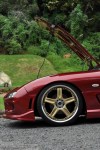 The exterior of the car is accentuated by a famous Japanese styling company, C-West. Front, side and rear kits were added, with the Custom Wine red with gold Pearl adding to the smoothness of the car. Series 8 Front Park Lights were added to the front with Series 8 Rear Tails also joining in to give this car a more modern look. When the FD3S was still in development, the designer had the concept of water running over rocks when it came to styling the FD. The word sleek comes to mind and with such styling produced, the RX-7, even now days is a car which doesn’t age.