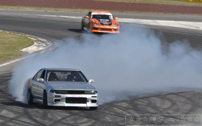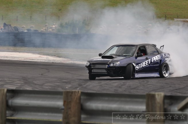 Gee Mutch was there in his RB26 Powered Subaru busting out an immense amount of smoke as he came out of the hairpin into the front straight.