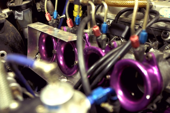 As you can see the intake is sorted through quad throttles and a sports Injection and Nos setup. The nos was unhooked at the time as this motor was only fresh and was getting dyno’ed the next day.