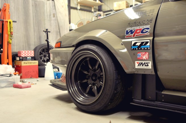 With any good car, its all about balance. So to be able to use this little hachiroku to its potential, Morita-san has made his own knuckles to increase his lock.
